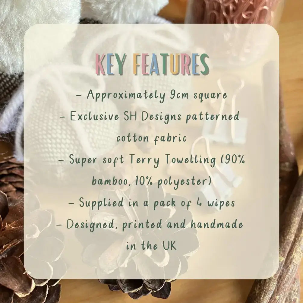 These reusable cotton face wipes have been created using original SH Designs artwork. They are sustainable, durable and reuseable - the perfect eco-friendly switch to make your daily routine. They can be used to apply or remove cleanser, apply toner, remove eye make up... whatever you'd normally use disposable cotton wool pads for, these reusable cotton pads are the perfect alternative!