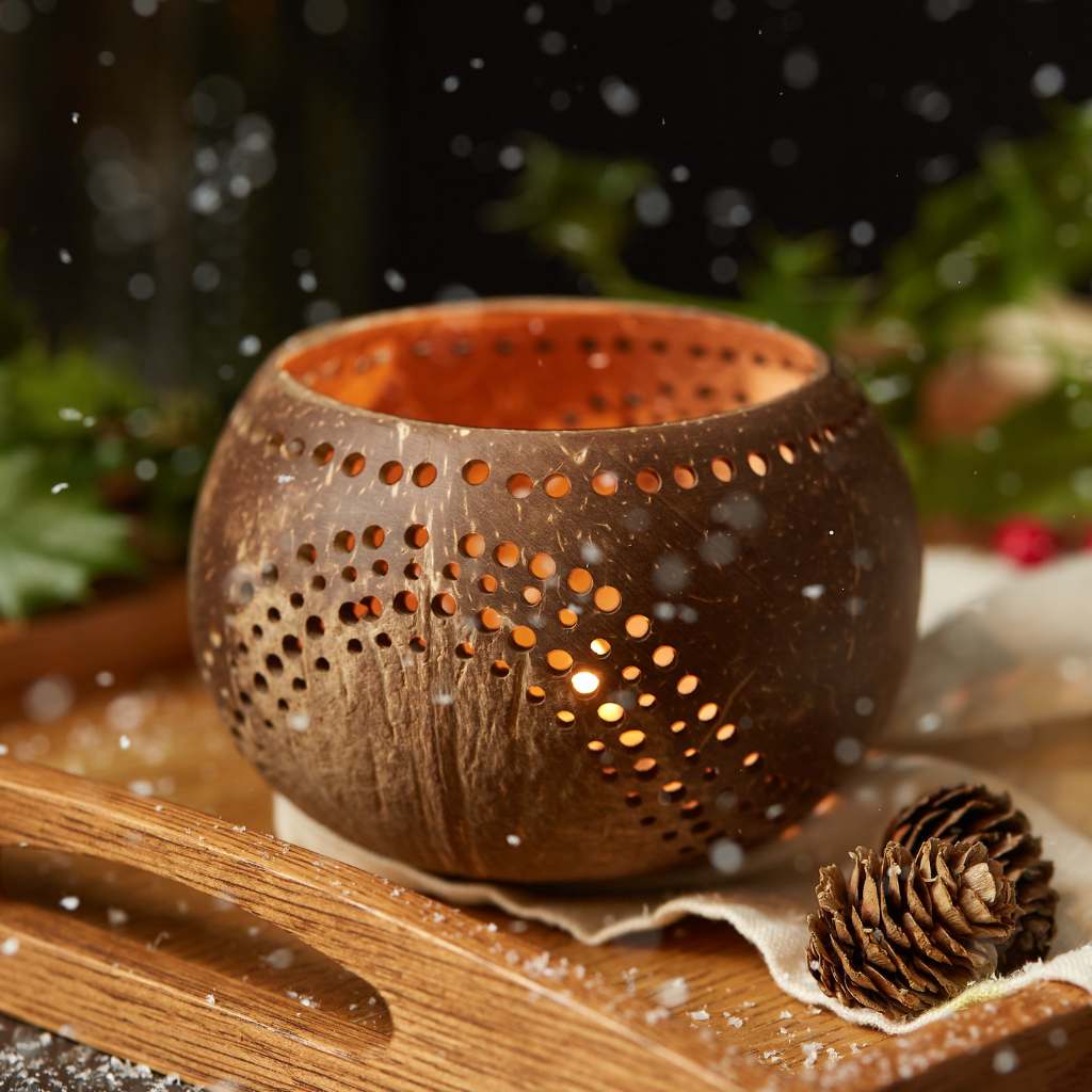 Coconut Shell Tea Light Holders – Set of 2 (Handmade)